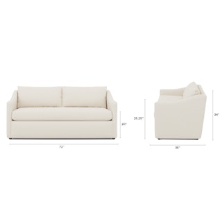 A minimal look with maximum impact. The Landry marries laid back comfort with elegant details to produce a loveseat that is as comfortable hosting movie night as it is a cocktail hour. Sloping sleigh-style arms and clean straight lines make it simple to pair this loveseat with many different styles. Try it with a warm white backdrop, against a wildly patterned rug, or draped with your favorite blanket. The Landry is easygoing style at its best.