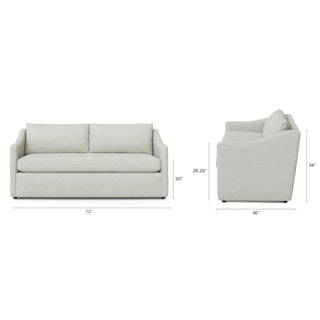 A minimal look with maximum impact. The Landry marries laid back comfort with elegant details to produce a loveseat that is as comfortable hosting movie night as it is a cocktail hour. Sloping sleigh-style arms and clean straight lines make it simple to pair this loveseat with many different styles. Try it with a warm white backdrop, against a wildly patterned rug, or draped with your favorite blanket. The Landry is easygoing style at its best.