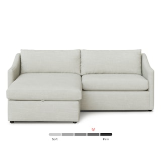 A minimal look with maximum impact… and maximum seating area. The Landry marries laid back comfort with elegant details to produce a sectional that is as comfortable hosting movie night as it is a cocktail hour. Sloping sleigh-style arms and clean straight lines make it simple to pair this sectional with many different styles. Try it with a warm white backdrop, against a wildly patterned rug, or draped with your favorite blanket. The Landry is easygoing style at its best.