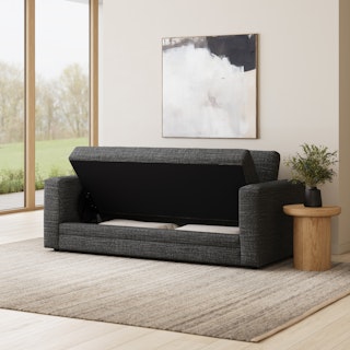 “No drinks allowed on the Sofa” — we were always told. Well look at us now Mom, we have the Riley. With a treasure chest hidden below its spacious bench seat, Riley has the capacity to store just about anything. Whether you want the ultimate lounger to melt into its plump poly-fill cushions, or lean against its sturdy corner-blocked frame when it's time to sit up and make your point, Riley is gentle but firm.
