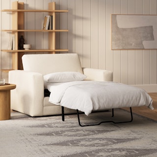 Upholstered in our ever-so-soft Bouclé fabric, you can enjoy your morning cuppa in peace. Whether you want the ultimate overnight sleeper and melt into its memory foam mattress, or lean against its sturdy corner-blocked frame when it's time to sit up and make your point, Riley is gentle but firm.
