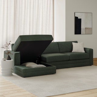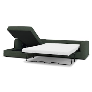 Upholstered in our ever-so-soft Bouclé fabric, you can enjoy your morning cuppa in peace. With its fold-out memory foam mattress, and a treasure chest hidden below its spacious chaise seat, Riley is ready for just about any situation. Whether you want the ultimate lounger to melt into its plump poly-fill cushions, or lean against its sturdy corner-blocked frame when it's time to sit up and make your point, Riley is gentle but firm.