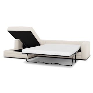 Upholstered in our ever-so-soft Bouclé fabric, you can enjoy your morning cuppa in peace. With its fold-out memory foam mattress, and a treasure chest hidden below its spacious chaise seat, Riley is ready for just about any situation. Whether you want the ultimate lounger to melt into its plump poly-fill cushions, or lean against its sturdy corner-blocked frame when it's time to sit up and make your point, Riley is gentle but firm.