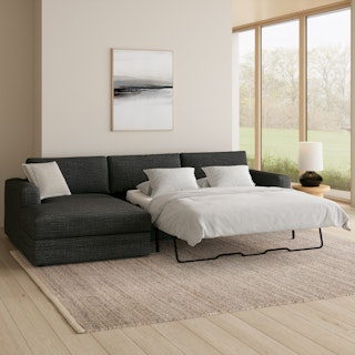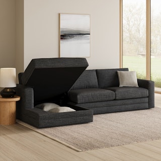 “No drinks allowed on the Sofa” — we were always told. Well look at us now Mom, we have the Riley. With its fold-out memory foam mattress, and a treasure chest hidden below its spacious chaise seat, Riley is ready for just about any situation. Whether you want the ultimate lounger to melt into its plump poly-fill cushions, or lean against its sturdy corner-blocked frame when it's time to sit up and make your point, Riley is gentle but firm.