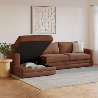 Riley 118" Left Storage Sleeper Sectional - Napa Rust