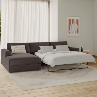 Riley 118" Velvet Left Storage Sleeper Sectional - Hale Warm Gray