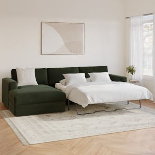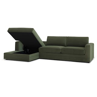 Riley 118" Velvet Left Storage Sleeper Sectional - Hale Fir Green