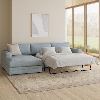 Riley 118" Left Storage Sleeper Sectional - Silver Light Blue