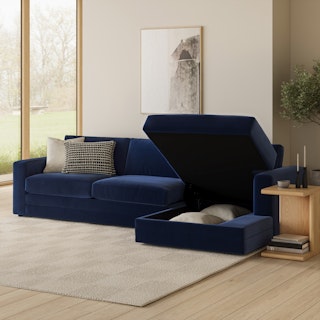 Riley 118" Velvet Right Storage Sleeper Sectional - Hale Ink