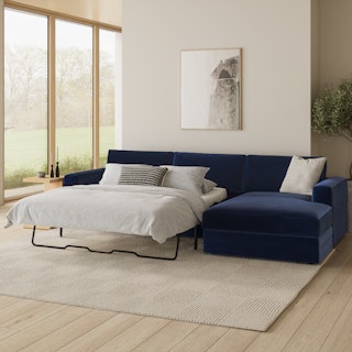 Hmm, there aren’t any reviews yet for the Riley 118" Velvet Right Storage Sleeper Sectional - Hale Ink -