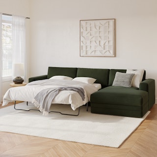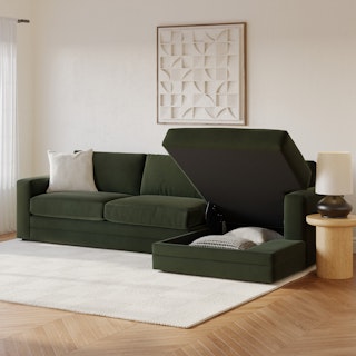 Hmm, there aren’t any reviews yet for the Riley 118" Velvet Right Storage Sleeper Sectional - Hale Fir Green -