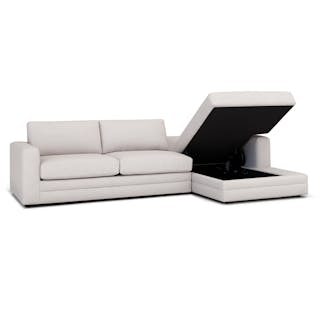 - Spacious storage hidden beneath chaise cushion. Accessible by an easy-to-use hydraulic-assisted lift function
