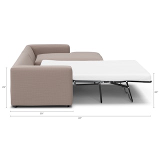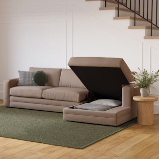 “No drinks allowed on the Sofa” — we were always told. Well look at us now Mom, we have the Riley. With its fold-out memory foam mattress, and a treasure chest hidden below its spacious chaise seat, Riley is ready for just about any situation. Whether you want the ultimate lounger to melt into its plump poly-fill cushions, or lean against its sturdy corner-blocked frame when it's time to sit up and make your point, Riley is gentle but firm.