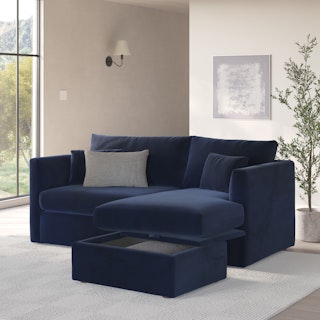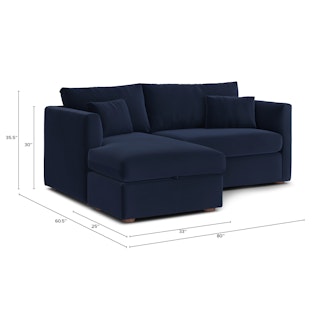 How do you want your sofa to feel? Elevated, comfortable, calm, and collected. With clean details and pleasing design heft, the Marina reversible storage sectional manages to feel at once laid-back and put together. Generously padded seats and armrests encourage long periods of meandering, while the hidden storage below the chaise can hide all kinds of goodies. Upholstered with Hale velvet, the Marina is fade-resistant, easy to clean, and anti-crush. Throw on your favorite 90s romcom and bask in a little nostalgia.