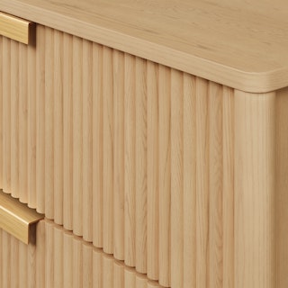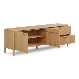 With brass handles, fluted doors, and spindle legs, the Liv Media Unit adds a touch of elegance to your entertainment center. A cable management cutout ensures you can hide all those unsightly wires and receivers, and with two soft-close drawers, you can stash away the hordes of remotes when your clean freak tendencies kick in. Whether you're making a statement or just trying to organize your entertainment center, Liv will be a calming presence when the movie starts.