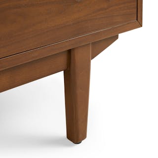 - Made from a mix of veneered and solid wood: veneer is highly durable, whereas solid wood is used to build beautiful details and support weight