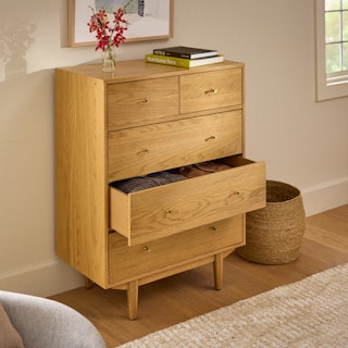 I’m completely obsessed with my new Cooper 5 drawer chest in natural oak! The warm honey tone is the perfect neutral and I love the sleek design. Love how the... More