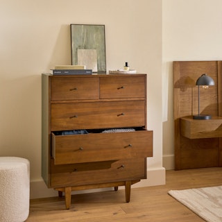 An apartment-friendly chest, the Cooper has a small footprint but doesn't lack storage. Five spacious soft-close drawers provide ample space for anything you need to stash away. Sleep well, knowing you'll wake up to Cooper's subtle, minimal design in the morning.