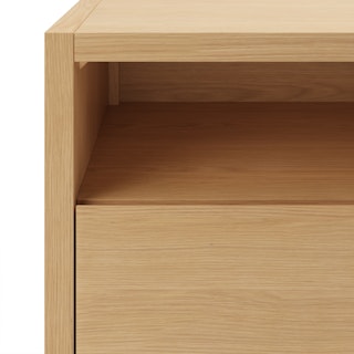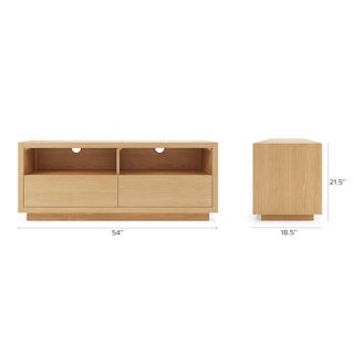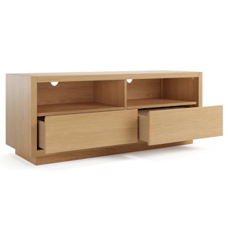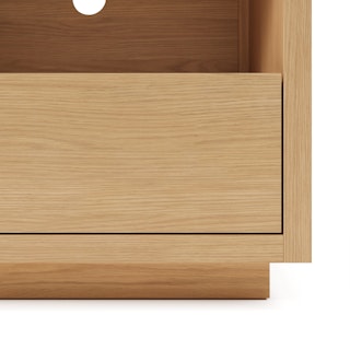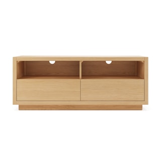 The strong, silent type. The Leif Media Unit embodies the classic tropes we associate with Scandinavian good looks: slender, blond, sturdy, impeccable posture. But it's not all good looks and clean lines; it's also soft-spoken and sensitive to your (storage) needs. Featuring two discreet soft-close drawers and two open cubbies topped with cable management cut-outs, it boasts some serious storage capacity. Set atop a subtle plinth base, the Leif Media Unit is the perfect way to keep an open, airy vibe without sacrificing storage space.