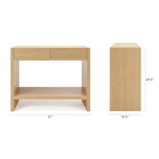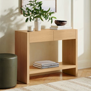 The strong, silent type. The Leif Console embodies the classic tropes we associate with Scandinavian good looks: tall, good-looking, sturdy, impeccable posture. With two soft-close drawers and plenty of storage for shoes below, you can rest assured that your Leif not only looks gorgeous but is also soft-spoken and sensitive to your (storage) needs.