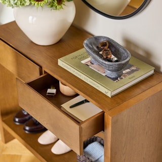 The strong, silent type. The Leif Console embodies the classic tropes we associate with Scandinavian good looks: tall, good-looking, sturdy, impeccable posture. With two soft-close drawers and plenty of storage for shoes below, you can rest assured that your Leif not only looks gorgeous but is also soft-spoken and sensitive to your (storage) needs.