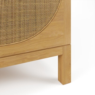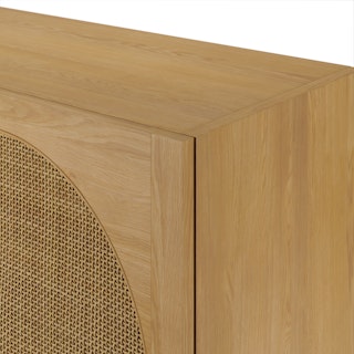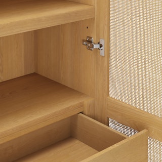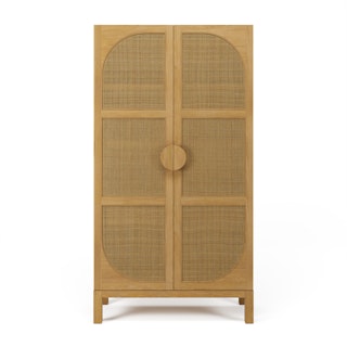 Easy, breezy, beautiful. The Dania cabinet smacks of summer all year round: box cane panels on the doors lend visual lightness to a large, hardworking storage piece. Open the doors to find a concealed drawer and two adjustable shelves. With statement handles and solid wood legs, and doors, the Dania manages to have both a fanciful design and smart utility.