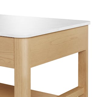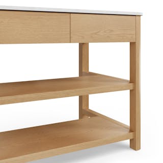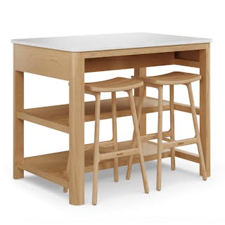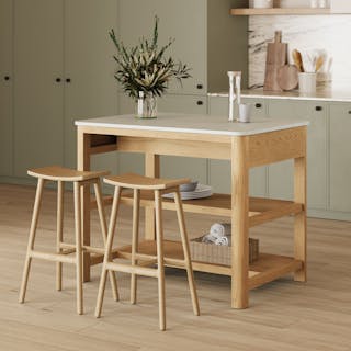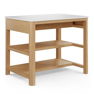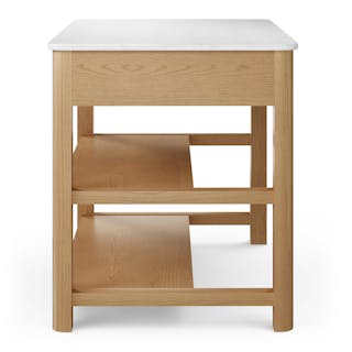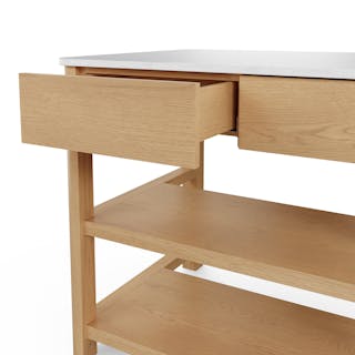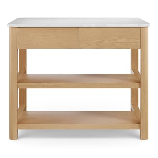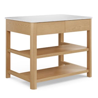 Make yourself at Holme. This kitchen island makes a big impact with a small footprint: designed to make the most of tiny kitchen spaces, the Holme features open shelving and soft-close drawers to keep your kitchen essentials at the ready. Built from solid and veneered wood, and topped with a stone counter, the Holme is not only endlessly versatile—it’s easy to keep clean.