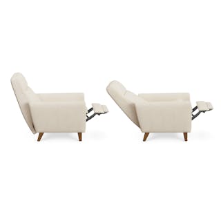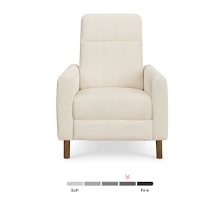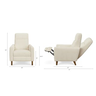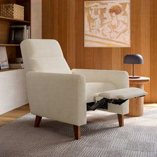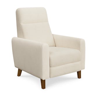 A master of disguise, the Forrest Recliner effortlessly transforms from a mid-century modern lounge chair to a deluxe recliner. Made with high density foam filling and solid wood legs, the Forrest features a 3-point push back reclining mechanism that gives you more control over the way you lounge. All the way back for your afternoon nap, partially-reclined for a relaxed game show marathon, or fully upright when you’ve got company — the choice is yours.