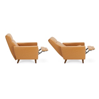 A master of disguise, the Forrest Recliner effortlessly transforms from a mid-century modern lounge chair to a deluxe recliner. Made with high density foam filling and solid wood legs, the Forrest features a 3-point push back reclining mechanism that gives you more control over the way you lounge. All the way back for your afternoon nap, partially-reclined for a relaxed game show marathon, or fully upright when you’ve got company — the choice is yours.