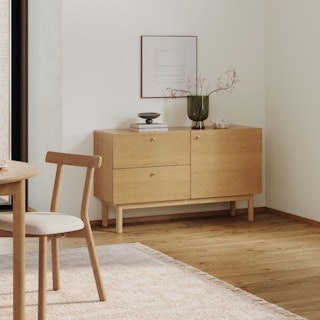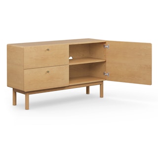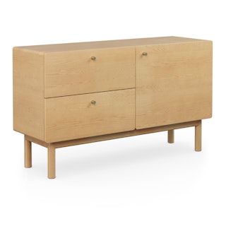 Embodying all the light and airy qualities of the Scandi design style, the Heidi sideboard is purposely unembellished to let its thoughtful details shine: solid-wood legs and apron, with subtle radiused corners, highlight its beautiful wood grain. Soft-close drawers and doors, adjustable shelving, and cable management are all there to accommodate your storage needs. As the Swedes would say... "Hurra!"