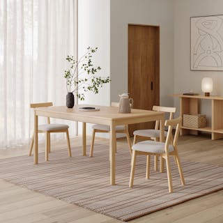 Keeping supper simple since mid-2025. The Heidi table is purposely unembellished to let its thoughtful details shine: a lip of solid-wood edging highlights the beautiful wood grain and visually separates the top and base of the table. A drop-in leaf emerges to accommodate unexpected guests, or to make more room for the fourth-grade poster art project. Next up on our quest to simplify… meal planning.