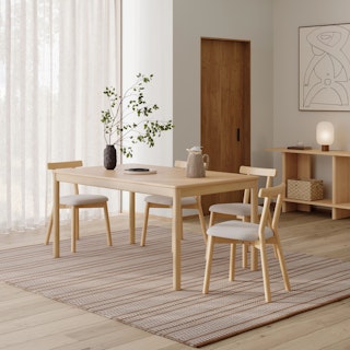 Keeping supper simple since mid-2025. The Heidi table is purposely unembellished to let its thoughtful details shine: a lip of solid-wood edging highlights the beautiful wood grain and visually separates the top and base of the table. A drop-in leaf emerges to accommodate unexpected guests, or to make more room for the fourth-grade poster art project. Next up on our quest to simplify… meal planning.