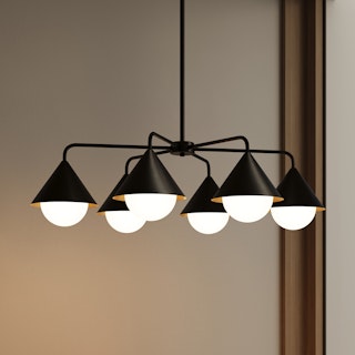 Do you need a light? How about six? Projecting a warm glow from its elegant cone-shaped shades, Bing brings cozy vibes. Blending industrial style with the luxurious statement-making chandelier design, Bing is a unique piece that can enhance any room in your home.