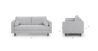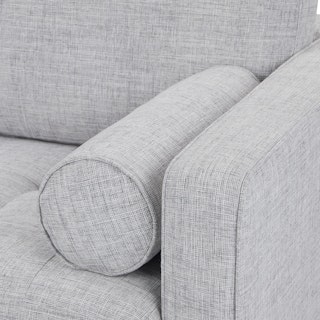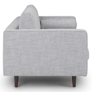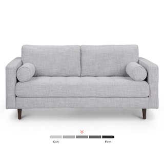 Our most popular sofa, reimagined for apartment living. This modern take on a mid-century classic features clean lines, a tufted benchseat, and luxuriously stuffed back cushions. Two matching round bolsters complete the look.