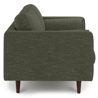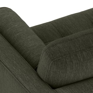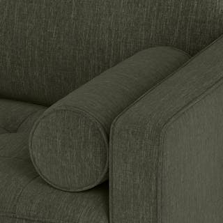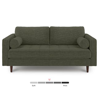Our most popular sofa, reimagined for apartment living. This modern take on a mid-century classic features clean lines, a tufted benchseat, and luxuriously stuffed back cushions. Two matching round bolsters complete the look.