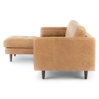 A classic for a reason. Upholstered in full-aniline leather, the sectional plays the same notes as our Sven Sofa, but with more space to stretch out. Over time, the leather will develop a beautiful vintage patina. Natural color variations, wrinkles and creases are part of the unique characteristics of full-aniline leather. It will develop a relaxed vintage look with regular use.