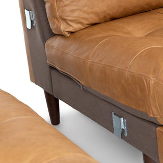 - Upholstered in Charme Leather, our full-aniline leather that’s smooth to the touch and untreated for a natural look