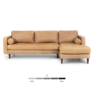 A classic for a reason. Upholstered in full-aniline leather, the sectional plays the same notes as our Sven Sofa, but with more space to stretch out. Over time, the leather will develop a beautiful vintage patina. Natural color variations, wrinkles and creases are part of the unique characteristics of full-aniline leather. It will develop a relaxed vintage look with regular use.