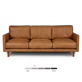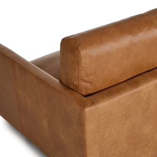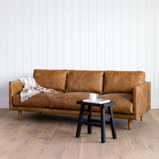 You know your dad’s incredible vintage bomber jacket? The Nirvana dakota tan leather sofa is that jacket, but in couch form. With super-plush down-filled cushions, a corner-blocked wooden frame, and a leather patina that only gets better with age, the Nirvana will have you looking cool and feeling peaceful every time you take a seat. Looks pretty great with a sheepskin throw, if we may say so. With use, this leather will become softer and more wrinkled and the cushions will take on a lived-in look, like your favorite leather jacket.