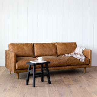 Our durable full-aniline Dakota leather: untreated for a natural look and buffed for a soft touch.