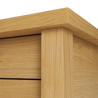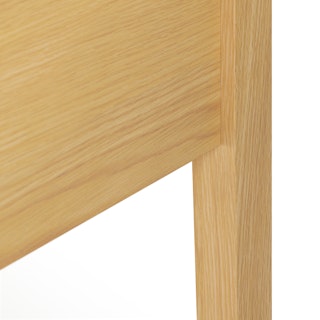 Made from a mix of veneered and solid American oak: veneer is highly durable, whereas solid wood is used to build beautiful details and support weight