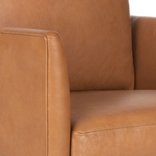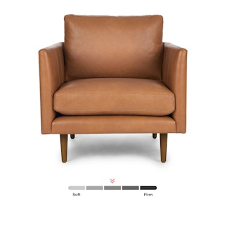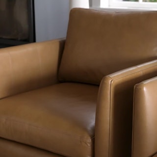 The Burrard chair features sumptuous leather, strong lines, and sinkable cushions. Details such as double-stitched seams, hand-folded corners, and waxed Italian-tanned leather speak to quality construction, while slender wooden legs offer stability without adding bulk. Sit back with a strong drink and a good book, and reflect on your accomplishments — such as your good taste.