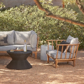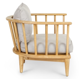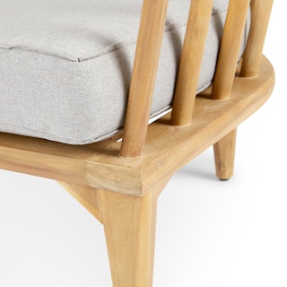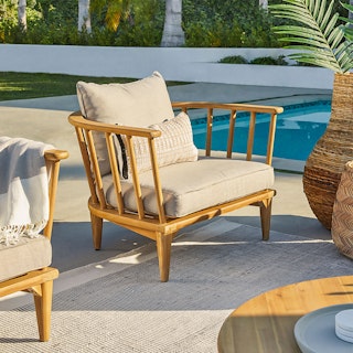 Cabana baby. The Sora lounger is all about that mid-century luxury life. Think two months in the Catskills, water-skiing lessons, body-positive swimsuit parades, drinks with umbrellas. The Sora is here to support you between activities with its solid wood frame, rounded back, and double cushion action thematically named “Beach Sand.” Snuggle against that weather resistant cushioning, gathering energy for your next round of tennis… or for your evening dog walk.
