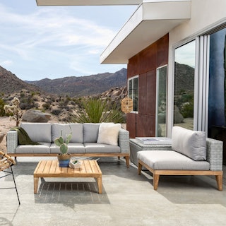 The gang’s all here. Get down with Urba Sofa Set, featuring its solid-acacia coffee table, synthetic wicker lounge chair, and cozy as-all-get-out sofa. Could the backyard get any better?