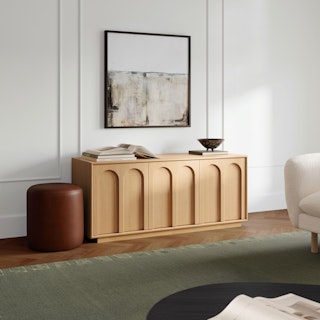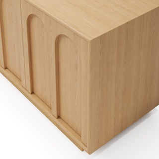Playful but never silly, the Prima adds a little zhuzh to a utilitarian media unit. Storage? No: the Prima does not simply store things. It caresses them behind two, soft-close doors, readying your pieces for the stage of life. With its elegant bevelled arches built upon a plinth base, the Prima is a classic mid-century piece that charms everyone with its playful aesthetic.