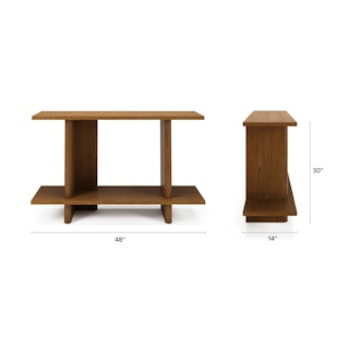 The Torme console is characterized by simple lines and thoughtful details, like the softly beveled edges and accent back support. Subtle but impactful, the Torme is a functional, beautiful addition to any space.