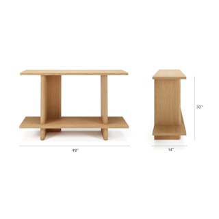 The Torme console is characterized by simple lines and thoughtful details, like the softly beveled edges and accent back support. Subtle but impactful, the Torme is a functional, beautiful addition to any space.