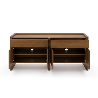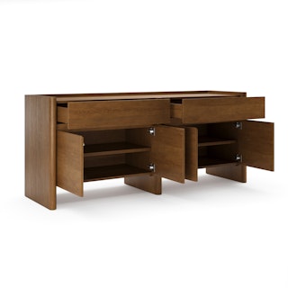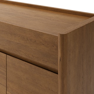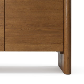 The Torme is characterized by simple lines and thoughtful details. The softly rounded edges are subtle but impactful: the commanding legs are just impactful. Soft-close drawers and doors with hidden pulls make the Torme sideboard a functional, beautiful addition to any space... yet another simple, thoughtful detail.