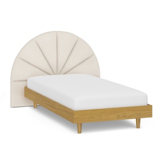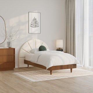 Caught you staring. Inspired by Gatsby-era cocktail lounges, our Almelo Headboard wants your attention. Foam-filled and upholstered with textural bouclé, the Almelo features built-in twin shelves positioned at an ideal height for drinks, bedside reading, and extra lighting. Staying in bed never looked so swanky.