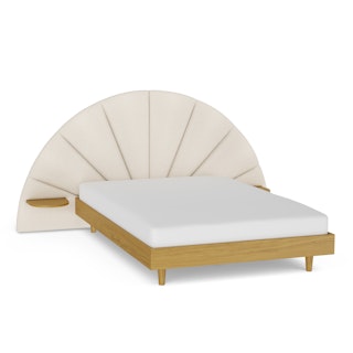 Caught you staring. Inspired by Gatsby-era cocktail lounges, our Almelo Headboard wants your attention. Foam-filled and upholstered with textural bouclé, the Almelo features built-in twin shelves positioned at an ideal height for drinks, bedside reading, and extra lighting. Staying in bed never looked so swanky.